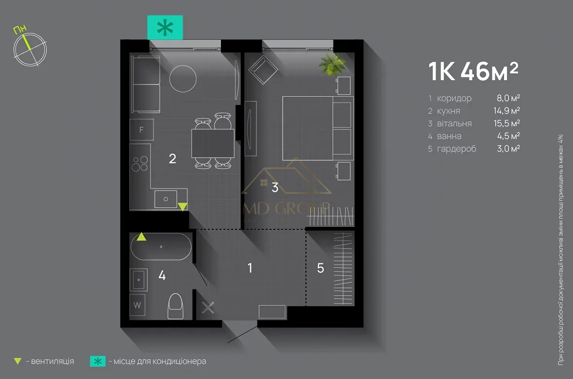 Продаж 1-кімнатної квартири у Family Plaza