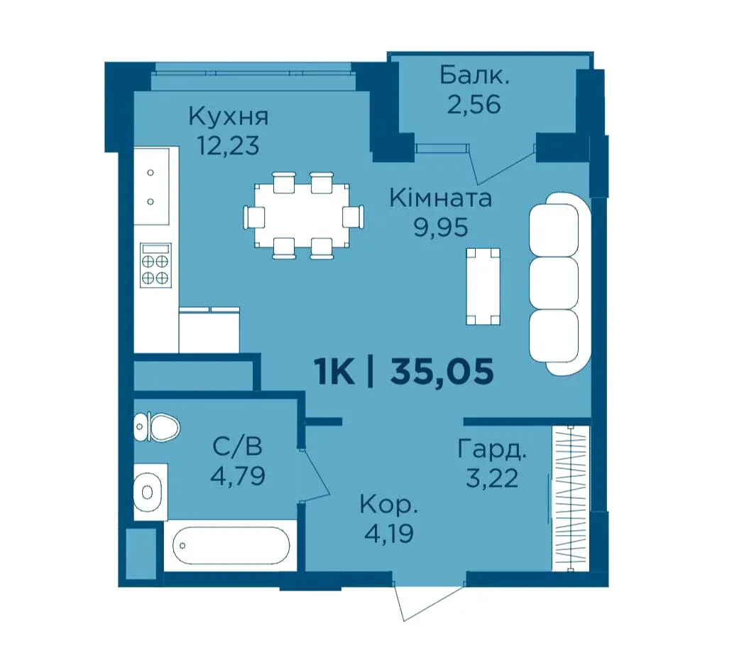 Продається 1 кім. квартира з покращеним плануванням!