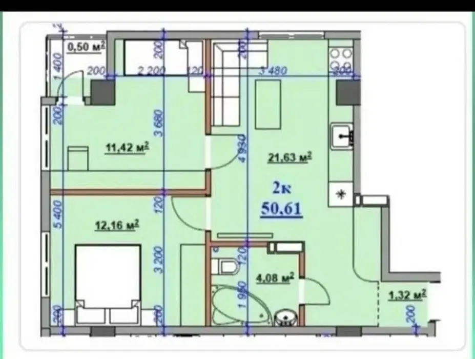 Продаж 2-х кімнатної квартири готової до проживання.
